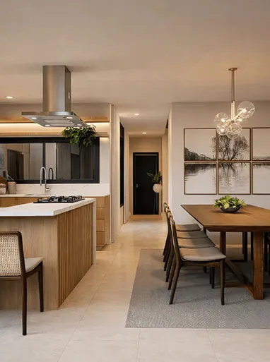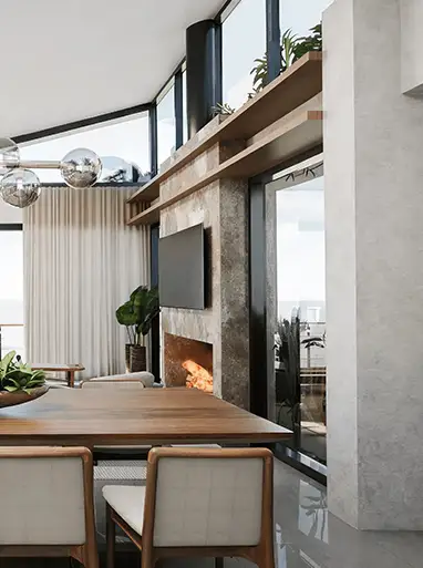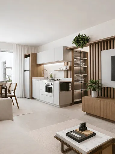 Realizamos projetos completos de interiores residenciais e comerciais, abrangendo desde o estudo de layout e imagens 3D até o detalhamento técnico de marcenaria, marmoraria e iluminação para a execução da obra.